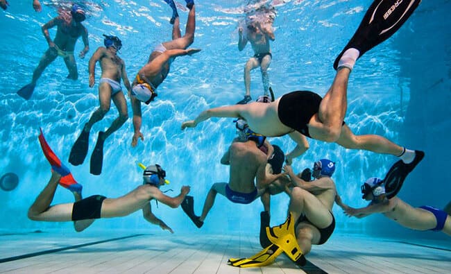 Este extraño deporte se origina en las asociaciones de buzos alemanes. Este juego ocurre totalmente bajo el agua. Os preguntaréis, ¿no flota la pelota a la superficie al estar bajo el agua?