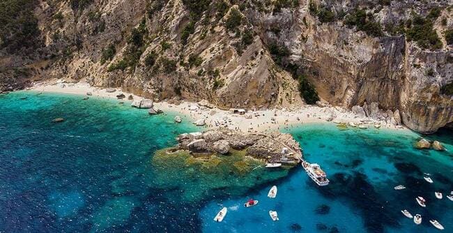 La playa de Cala Mariolu se encuentra en el pueblo de Baunei, al noreste de la capital de Cerdeña, Cagliari. Está bien escondida entre las rocas que la rodean, lo que le confiere un ambiente de tranquilidad y crea un enclave lleno de recogimiento. El color tan saturado de sus aguas turquesas puede hacer girar la cabeza. El agua es muy clara y el paisaje se complementa con la fina arena clara bajo los pies. La playa de Cala Mariolu es ideal para bucear con máscara, por lo que es aconsejable llevar el equipo adecuado. Cerca de la playa, detrás de las rocas, hay cuevas submarinas y otros rincones que se pueden explorar desde el lado submarino. Una forma interesante de llegar a Cala Mariolu es en barco o lancha neumática, organizada desde los puertos cercanos. La presencia de altas rocas alrededor hace que esta sea realmente la única y probada forma de llegar a esta playa, las mejores playas de Italia.